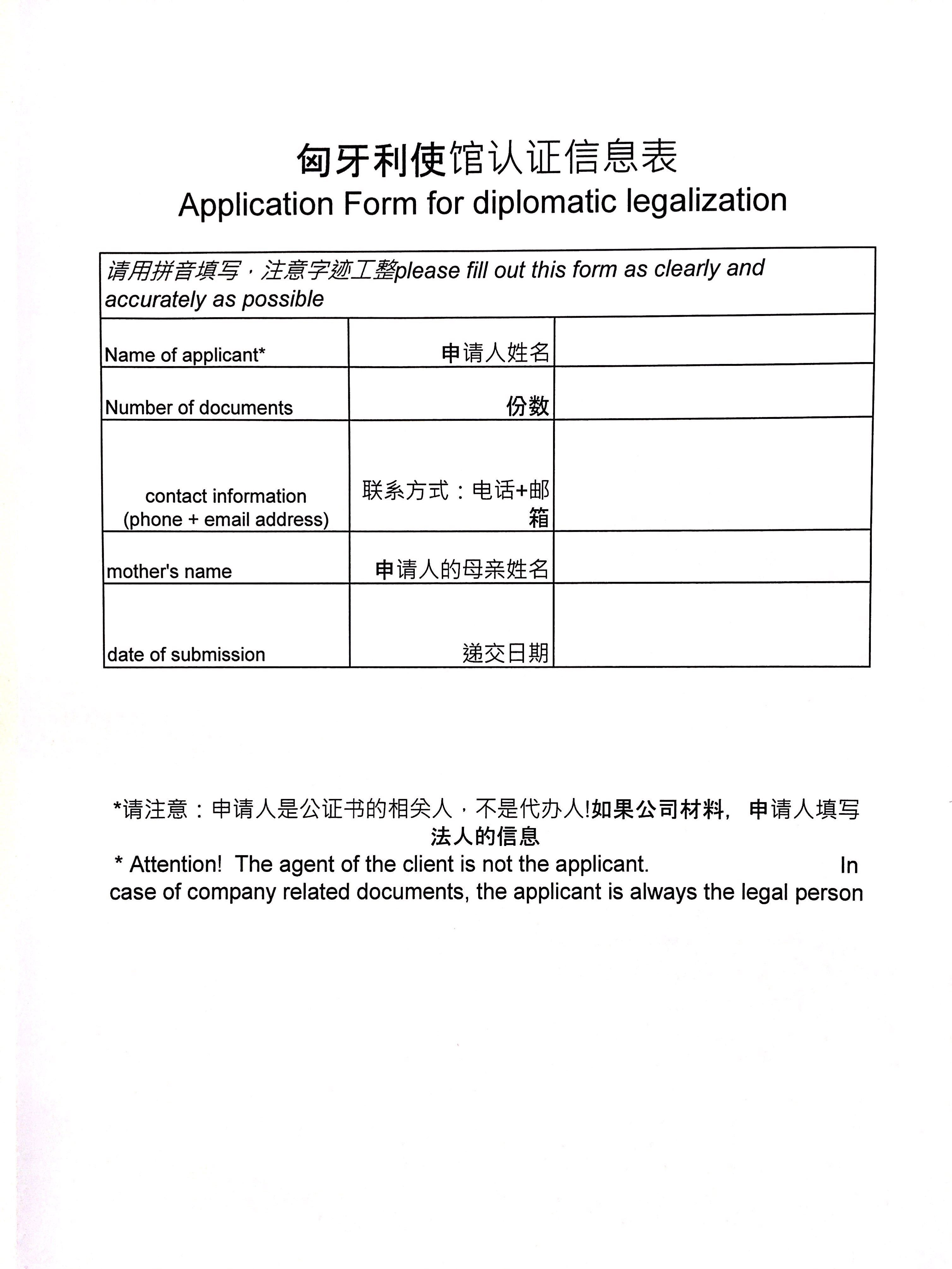 匈牙利 使馆认证申请表